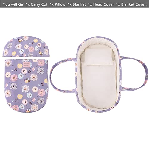 Bebamour Motivo Floreale Baby Dolls Culla Letto con Cuscino Coperta Maniglie Sacco Nanna Carrier per Bambole Reborn, Ragazze Americane, Fino a 15,3 Pollici Bambole Culla Letto Portatile,Sunflower
