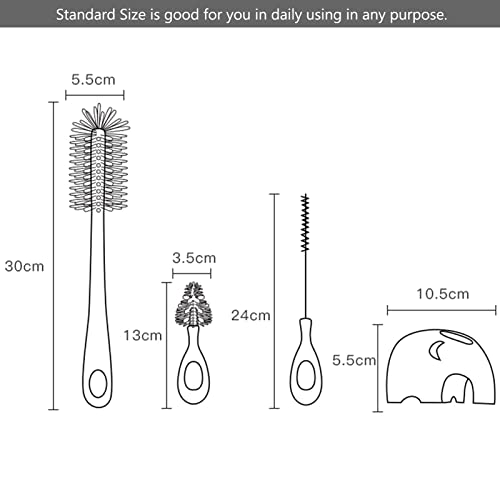Bebamour Spazzole per biberon in silicone per la pulizia del biberon Spazzola per la pulizia del ciuccio con supporto per riporre Spazzole per la pulizia antigraffio per cannucce(Green)