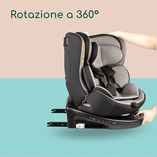 SEGGIOLINO AUTO GIREVOLE 360: puoi comodamente ruotare e girare la seduta del seggiolino verso la portiera per far salire e scendere il tuo piccolo dal seggiolino auto con una facilità eccezionale, ogni giorno, senza avere mal di schiena