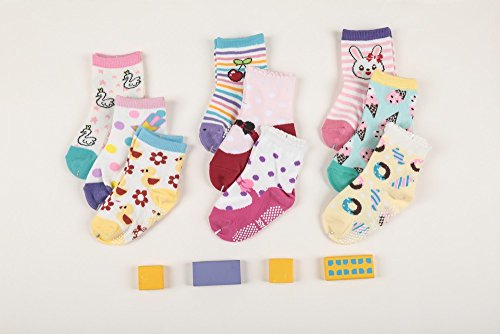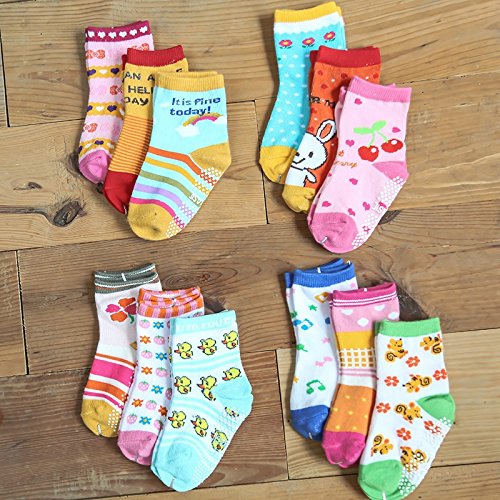 Bebedou Calzini Antiscivolo - Bambini e Neonati - Confezione da 12 Paia, Antiscivolo, Contton Blended Strentchable 12 confezione per 12-36 mesi Baby ragazze e ragazzi di Baby