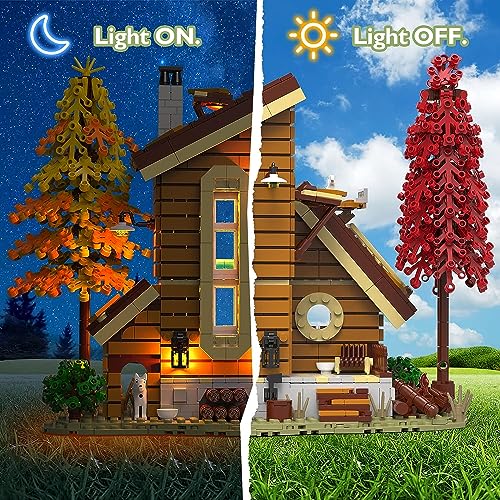 Beberlu Foresta Legno Cabina Casa Set di edifici con luce a LED, Cabina 1668 pezzi Modello compatibile Blocchi da costruzione Giocattoli, Regali Modulari per Età 6+ Ragazzi Ragazze Bambini Adult