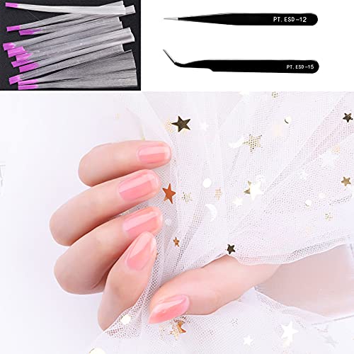 Bebochoi 200 Pezzi Fibra di Vetro per Unghie, Fibra Unghie Set, Fibra di Vetro per Unghie Kit Gel Estensione Unghie, per Fai Da Te Nail Art Manicure Accessori con 2 Pezzi Pinzetti