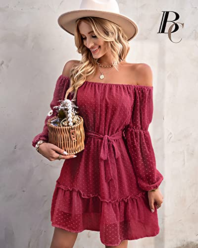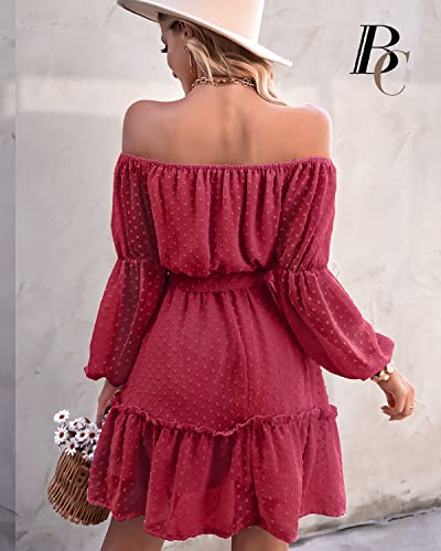 BebreezChic Vestito Donna a Pois Svizzer Mini Estivo off Shoulder Tunic Elegante Versatile Casuale