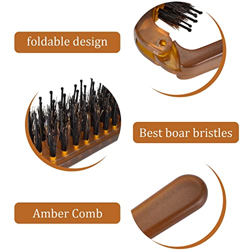 Becanno Spazzola per Capelli Pieghevole portatile, Spazzola per Capelli con Setole di Cinghiale, Spazzola da Viaggio Districante ad Asciugatura rapida Pettine per Capelli Tascabile (Ambra)