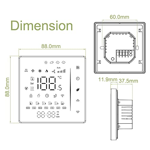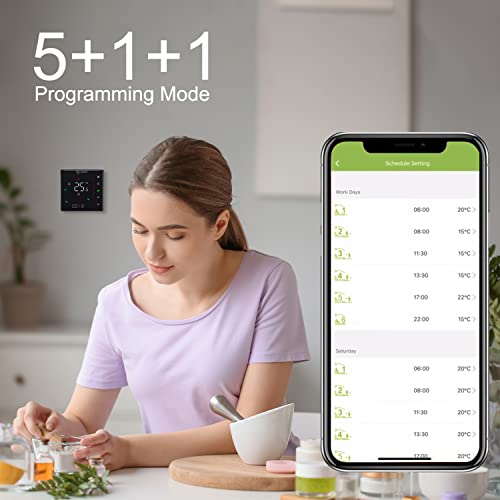Regolazione preimpostata modalità 5+1+1 a una settimana, impostazioni programmabili. Puoi impostarlo con il termostato così come il tuo telefono se sei connesso al wifi.