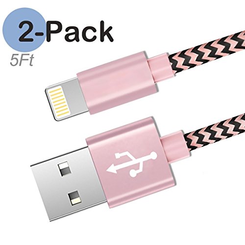 Becaso - cavo di alimentazione, confezione da 2 da 1,5 m in nylon intrecciato - cavo per caricabatteria per iPhone Apple - cavo di ricarica USB per iPhone 7/7 Plus/6S Plus/6 Plus/5/5S/5C/SE, iPad Pro/Air/Mini, iPod.