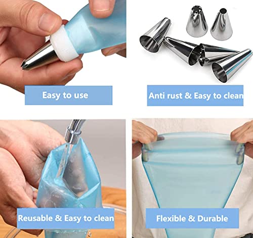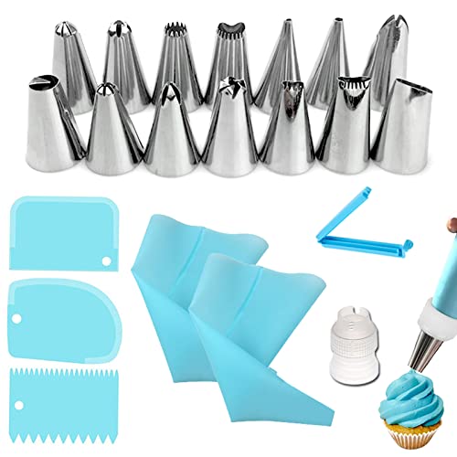 Beccucci per Pasticceria Set, Decorazione Torte per Pasticceria con 14 Ugelli, 2 Silicone Poche Riutilizzabili, 3 Raschietti per Torta, 1 Accoppiatore, 1 Clip, per Torte, Biscotti, Cupcakes (Blu)