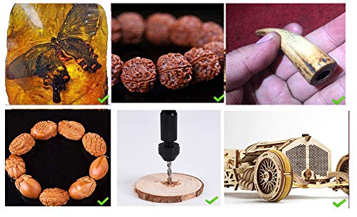 Ampia applicazione: il trapano a mano per legno può essere applicato su legno, gioielli, noce, ambra, cera d'api, noce, oliva, perline, PVC, acrilico e plastica, ecc.