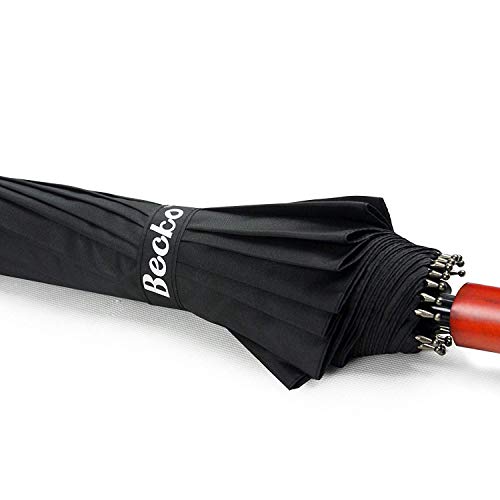 Becko 137,2 cm Auto Open Ombrello Lungo Ombrello con 16 aste, Durevole e Resistente Abbastanza per Il Feroce Vento e Pioggia Pesante, Stile Classico con Manico Curvo, Unisex Pioggia Ombrello - Nero