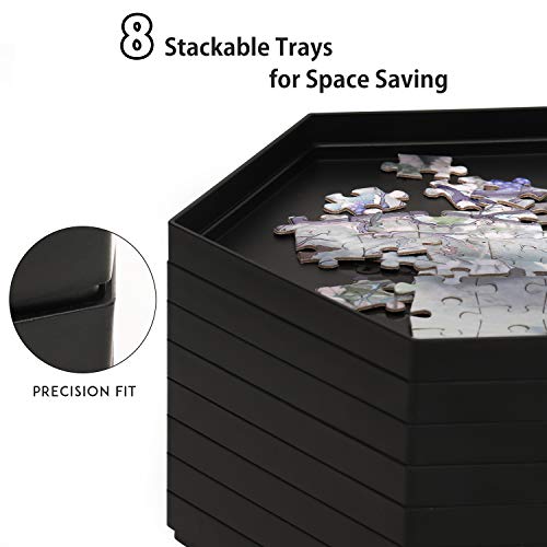 Becko - Vassoi impilabili per puzzle con coperchio, per puzzle fino a 1500 pezzi, 8 vassoi esagonali (nero)