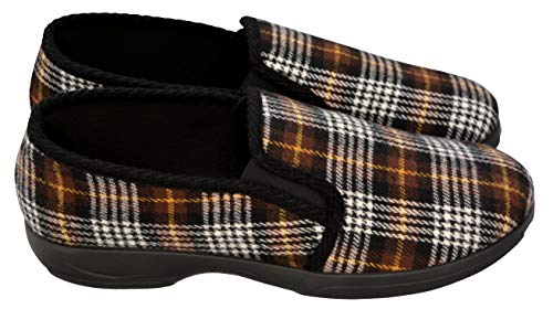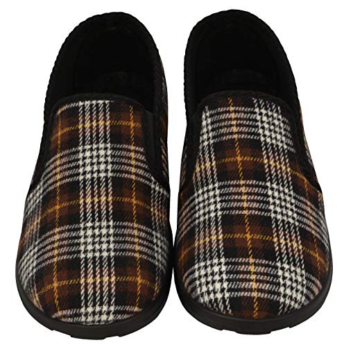 BeComfy Pantofole calde da uomo, foderate in lana, 40-46 EU (marrone a quadri, sfoderate, eu_footwear_size_system, adulto, numerico, medium, numeric_44), A quadri marroni, 44 EU