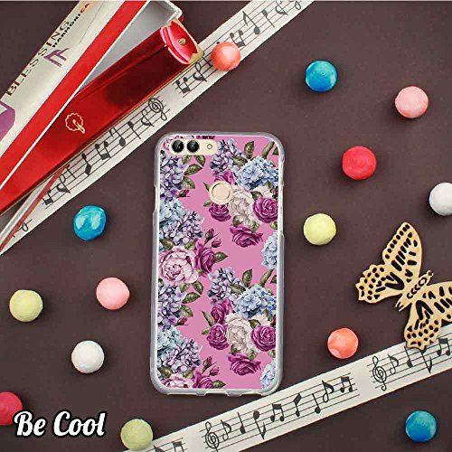 BeCool Custodia Gel per Huawei P Smart, Cover TPU prodotto col miglior silicone, protegge e si adatta alla perfezione al tuo Smartphone e oltrettutto ha il nostro disegno esclusivo Rose e ortensie.