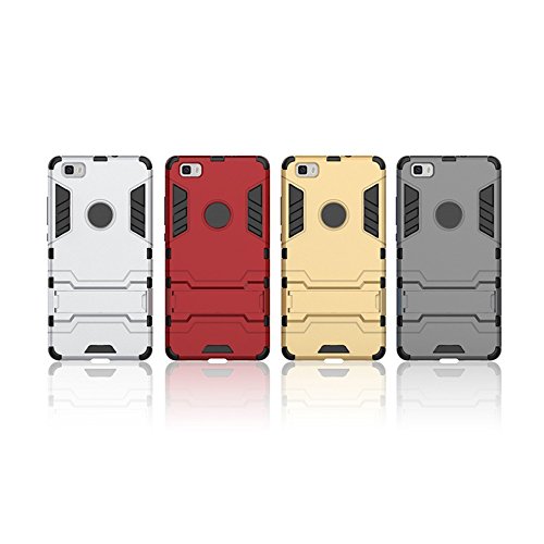 BeCool - Custodia ibrida [Armor Case] per Huawei P8 Lite, con funzione supporto Cover, assorbe gli autoscontro, Ultra delgada. Custodia Cover Huawei P8 lite. Cool Shield Argento