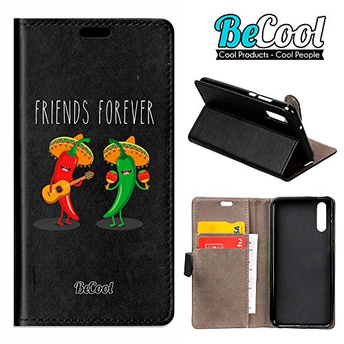 BeCool Custodia a Libro per Huawei P20, [Funzione di Supporto] Protegge e Si Adatta alla Perfezione al Tuo Smartphone e oltrettutto ha Il Nostro Disegno Esclusivo - Peperoncini piccanti per Sempre.