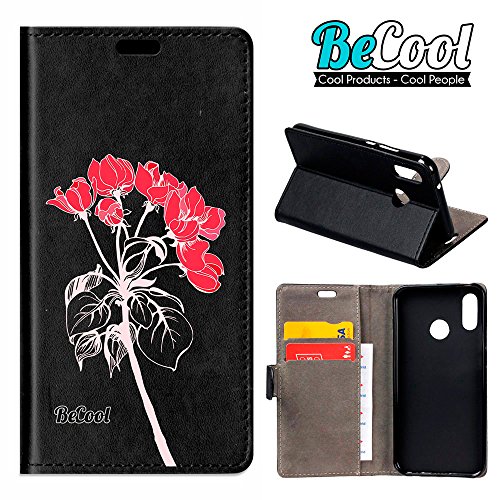 BeCool Custodia a Libro per Huawei P20 Lite, [Funzione di Supporto] Protegge e Si Adatta alla Perfezione al Tuo Smartphone e oltrettutto ha Il Nostro Disegno Esclusivo - Gerani Rossi.