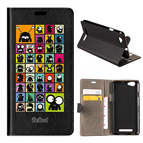 BeCool Custodia a Libro per Wileyfox Spark X, [Funzione di Supporto] Protegge e Si Adatta alla Perfezione al Tuo Smartphone e oltrettutto ha Il Nostro Disegno Esclusivo - Mostri immaginari.