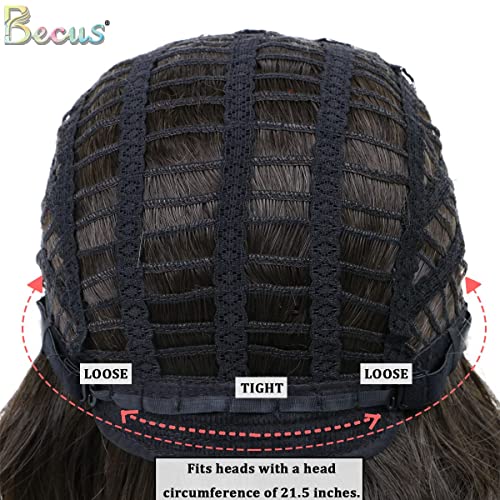 Becus Parrucca corta ondulata Bob con frangia parrucca sintetica Bob marrone scuro naturale lunghezza spalla Bob parrucca da donna (marrone chiaro)