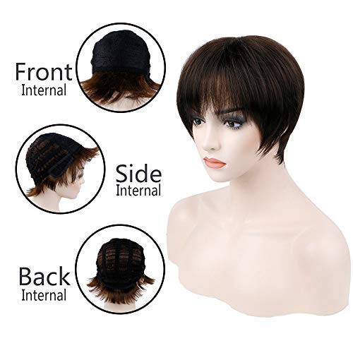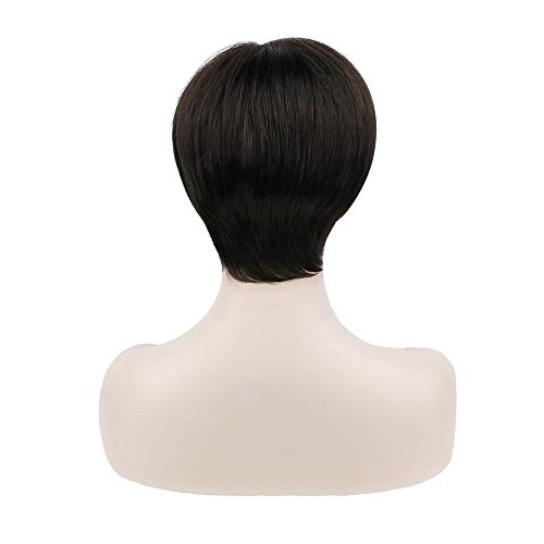 Becus parrucca corta Pixie Cut capelli lisci sintetici termoresistenti con scoppi per le donne (Bob Style # 33 marrone castano scuro)