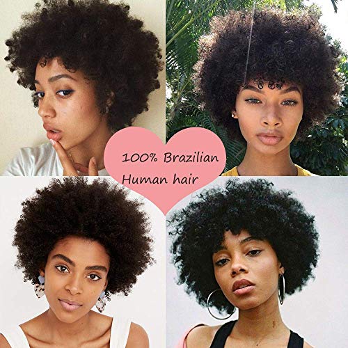 Becus Parrucca Donna Capelli Veri Umani Afro Kinky Curly Brasiliano Capelli Umani Afro Breve parrucche per le donne Nere uso Quotidiano (naturale nero # 1B)