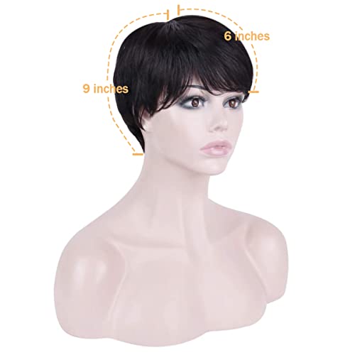 Becus Parrucca Donna Capelli Umani Pixie Cut Parrucca Capelli Corti Dritto Stratificato con Parte Laterale Frange Libero per le Donne (Nero Naturale # 1B)