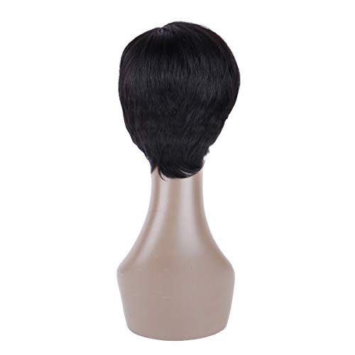 Becus Parrucche Corte per Donna Parrucche per Capelli Umani con Frangia Parte Laterale Parrucche per Taglio Pixie per Donna 1B Colore
