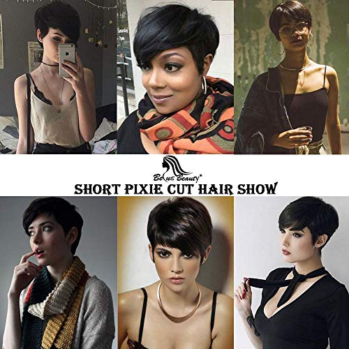 Materiale dei capelli: capelli umani brasiliani al 100%, parrucche taglio pixie per le donne, morbidezza e levigatezza, spargimento e grovigli sembrano naturali.