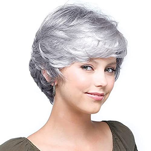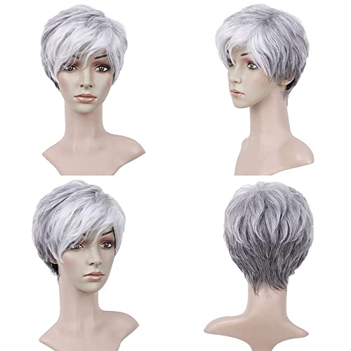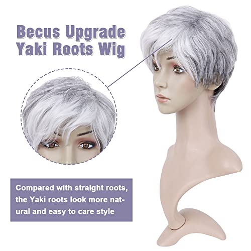 Parrucca Yaki Roots - Aggiornamento Yaki radici taglio a strati parrucca capelli corti, breve parrucca grigia per le donne.