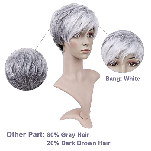 Colore dei capelli: parrucca bianca per capelli grigi con frangia bianca, il design del colore ti rende più attraente.