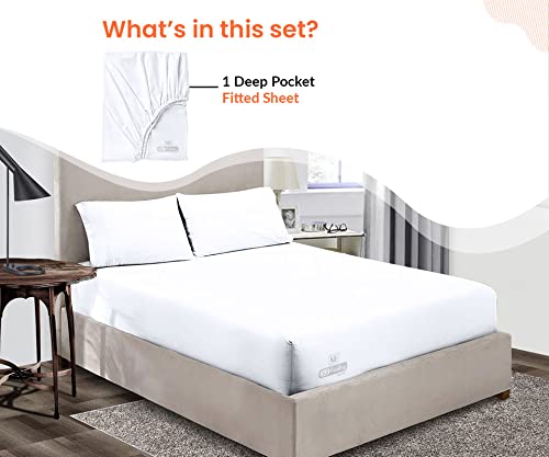 Sgi Bedding - Set da letto di 4 pezzi, lenzuola con angoli profondi 38 cm, 100% in cotone egiziano da 600 fili, collezione Europe, White, Doppio