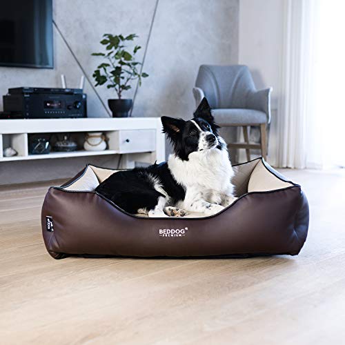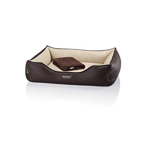 BedDog Premium Lettino Ortopedico per Cani Buffy, Cuscino Memory Foam, Cuccia Pelle Sintetica, Coperta Regalo - Melange (Marrone/Beige)