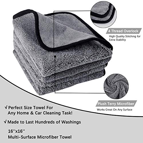 Bedee Panni Microfibra Auto per la Pulizia Ultra Spessa Super Assorbente Panni per lucidare,40cm x 40cm,Confezione da 4 (Grigio)