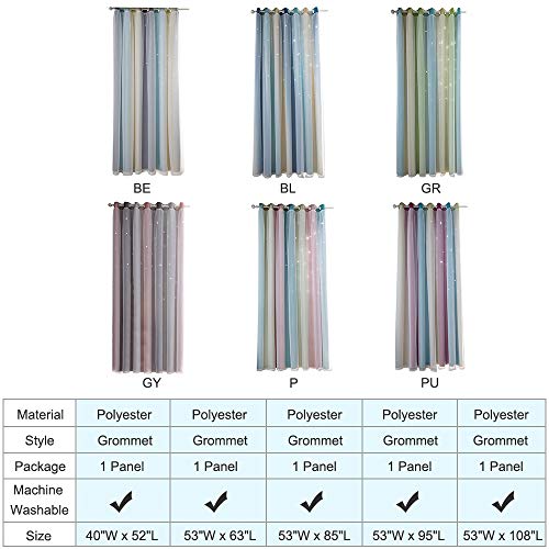 Bedler Star Tende Stelle Tende oscuranti per Bambini Ragazze Camera da Letto Soggiorno Colorato Doppio Strato Tende per finestre a Stella, 1 Pannello (53 ''L x 85'' L , Rosa) Tende da Letto