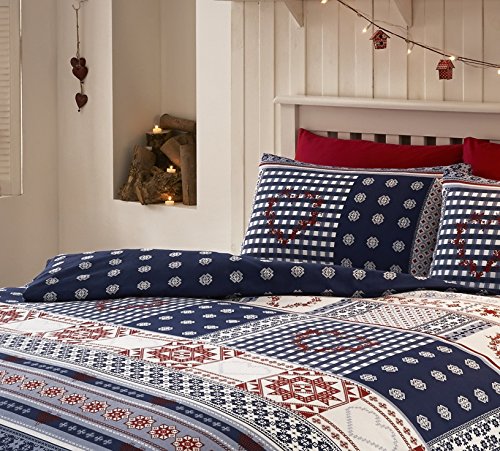 Copripiumino Alpine a fantasia norvegese, double face in flanella e disponibile in colorazioni ricche di stile. 100% cotone. Copripiumino in morbida flanella di cotone pettinato.