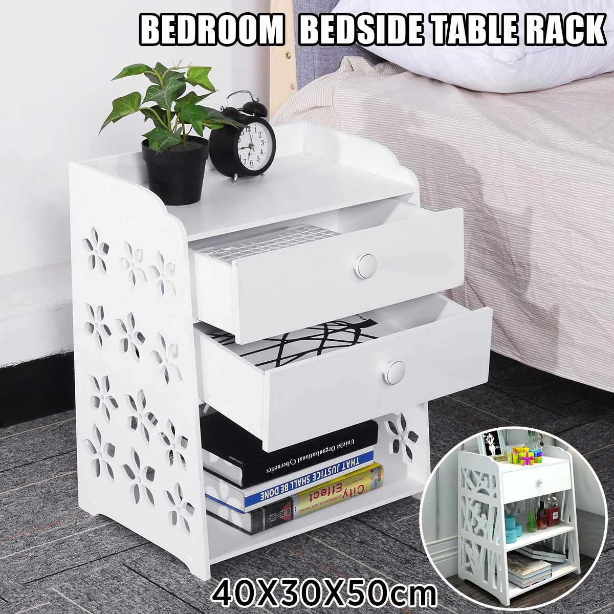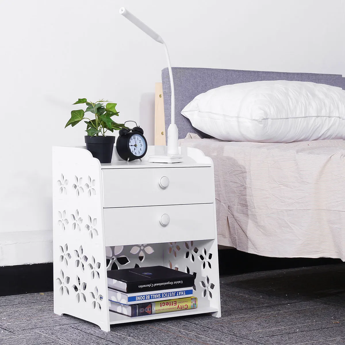 Bedroom Bedside Nightstands Two Drawers Storage Table Rack Night Table Cabinet Locker Organizer Storage Basket Wood-Plastic