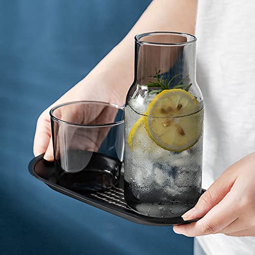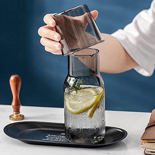 Bedside Night - Set caraffa per acqua con bicchiere in vetro, per collutorio in vetro trasparente, per tè di ghiaccio, bevande, per camera da letto, comodino, bagno, cucina, 500 ml (grigio)