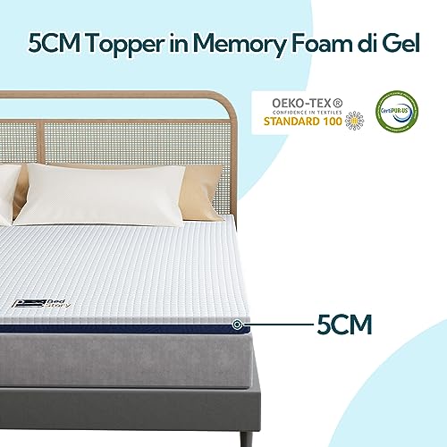 BedStory Topper Singolo 80x190, Topper in Memory Foam con Gel, Altezza 5 cm, Topper Materasso Singolo Traspirante con Rivestimento Rimovibile e Lavabile