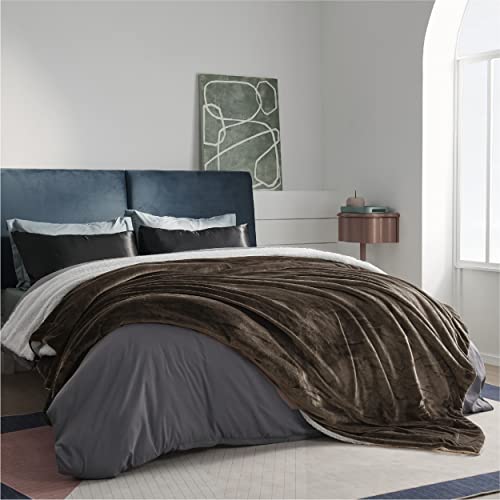 Bedsure, coperta calda e morbida, in tessuto sherpa, testurizzato e reversibile, Microfibra, Marrone, Twin/Double (150x200cm)