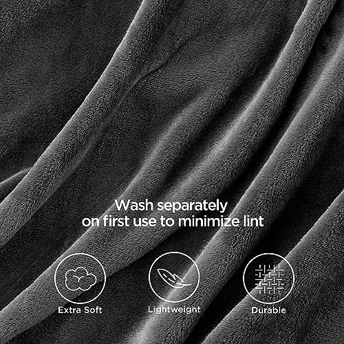 Bedsure Coperta in pile color antracite, 127 x 178 cm, 300 g/m², morbida e leggera, coperta accogliente per letto, divano, viaggi, campeggio