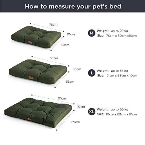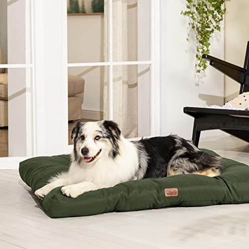 Bedsure Cuscino per Cani Taglia Grande - Cuscini per Cani Taglia Media Tappeto Cane Cuscino Cane Interno Cuscino Cuccia Cane Impermeabile 91x68x10 cm Verde Scuro Lavabile