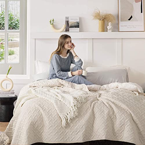 Bedsure Quilt -Solid-basket weave-Beige