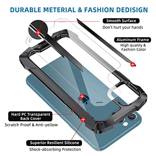 【Materiale resistente e durevole】 Materiale per PC rigido trasparente per la cover posteriore, mostra il colore originale dell'iPhone.Il metallo in alluminio su entrambi i lati è antiscivolo e resistente al calore.