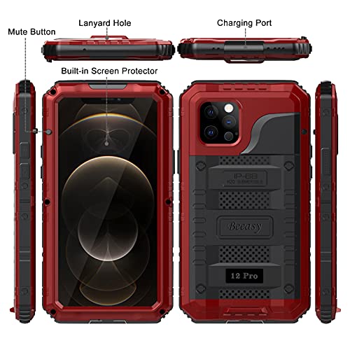 Beeasy Cover per iPhone 12 Pro Impermeabile Antiurto, Impermeabile IP68 Full Body Cover, Antigraffio Anti-Neve Robusta Antiurto Protettiva Custodia Subacquea per iPhone 12 Pro (6,1"), Rosso