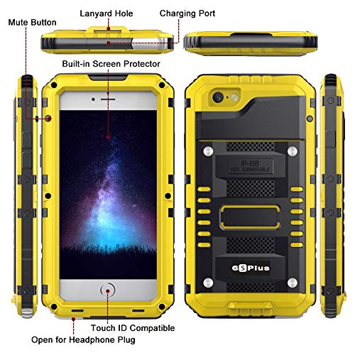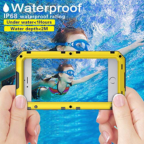 Beeasy Cover iPhone 6 Plus Impermeabile Antiurto Giallo, iPhone 6S Plus IP68 Waterproof Custodia Protettiva Full Body con Protezione dello Schermo, Antineve Anticaduta Robusta Militare Subacquea Case