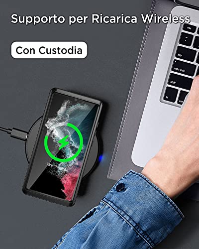 【Protettiva Resistente】 Doppia costruzione della copertura anteriore e posteriore per una protezione completa del corpo a 360°. Le robuste cornici del TPU riducono l'impatto della caduta accidentale del Samsung S22 Ultra. Ha buone prestazioni in impermeabile, anticaduta, antipolvere e antiurto.