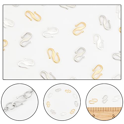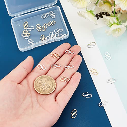 Beebeecraft 1 scatola 30 fermagli a gancio in ottone placcato oro 24 K, placcati in argento Sterling 925, mini connettori a gancio a forma di S, per gioielli fai da te, collane e bracciali