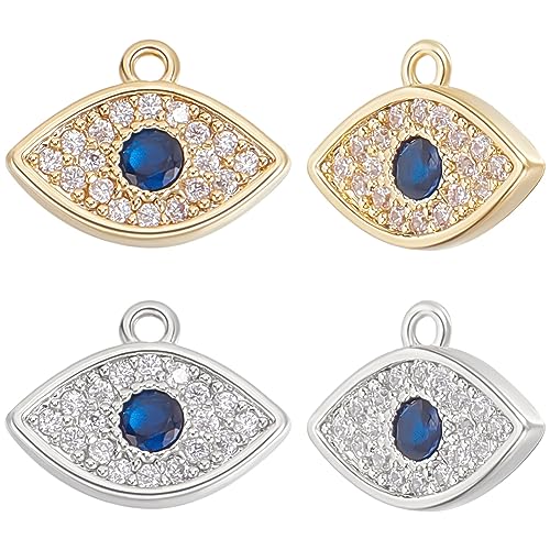 Beebeecraft 1 Scatola 10 Pezzi Ciondoli Occhi Malvagi Ottone Placcato Oro 18K con Zirconi Cubici 2 Colori Ciondoli Occhi Azzurri per Collana Fai Da Te Artigianato San Valentino