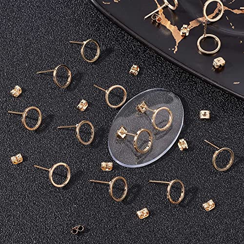 Beebeecraft 1 Scatola 20 Pezzi Orecchini A Bottone Cerchio Ottone Placcato Oro 18K Kit di Orecchini A Bottone A Cerchio Rotondo Vuoto con 20 Dadi per Orecchie A Farfalla per La Creazione di Gioielli
