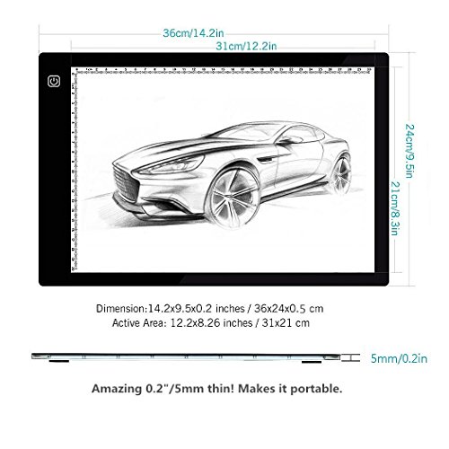 BEECOCO A4 Tavoletta Luminosa, LED abbozzando Tavolo da Disegno con 3 Livello Regolabile Luminosità Tatuaggio Pad Animazione, Sketch, Progettazione Stencilling