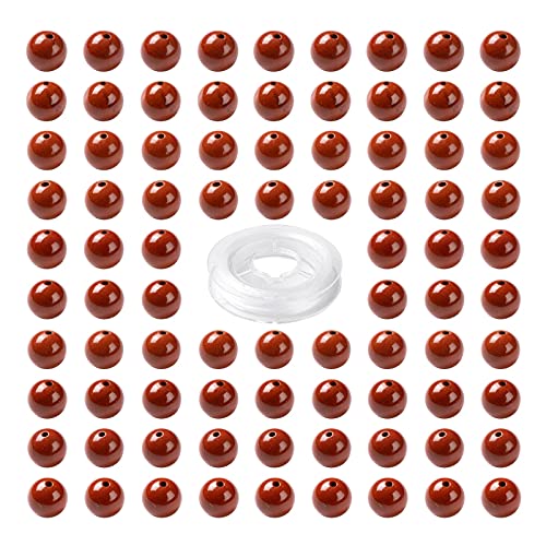BEEFLYING 100 pz 8mm Diaspro Rosso Perline Rotonde Perline Rotonde Lisce Naturali con Filo di Cristallo Elastico per Creazione di Collane di Gioielli e Braccialetti