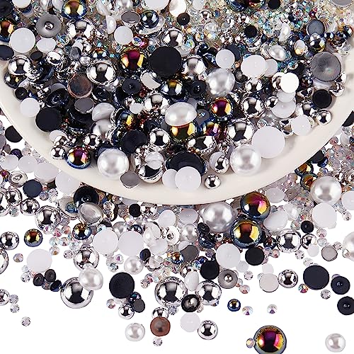 BEEFLYING 60g Misto di Perle Piatte e Strass in Resina Mezza Sfera di Perle da 3mm-10mm per Creazioni Artistiche Perle di Mezza Sfera Strass per Decorare Visi Bicchieri Biglietti Regalo e Gioielli